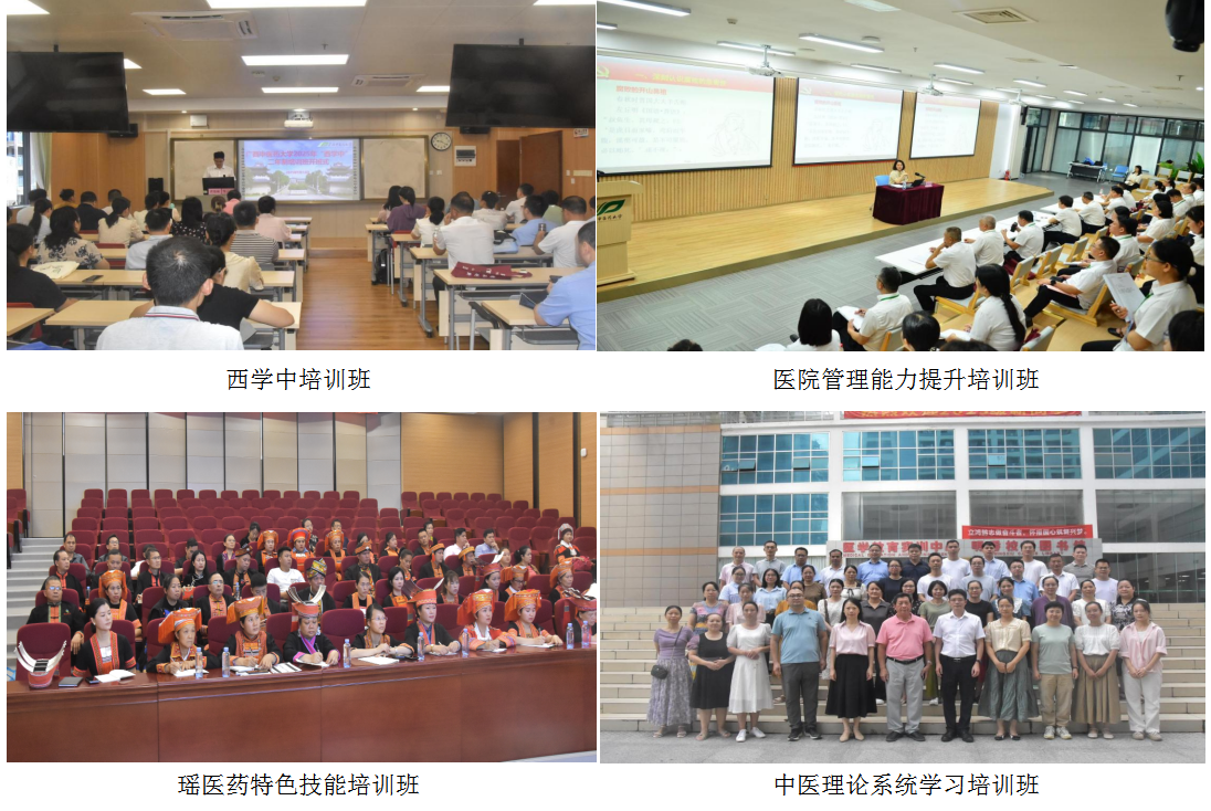我校继续教育学院依托非中医类别医师中医药专业知识培训基地和专业技术人员继续教育基地,与企事业单位合作开展非学历继续教育培训,构建服务全民终身学习的教育平台。近10年,学院为全区各地市培训西学中人员1500余人,为中医药、壮瑶医药传统医学师承人员及爱好者等提供中医药系统知识及技能提升培训1600余人次。多年来,我院凭借专业的教学师资团队及优质的管理服务,获得了社会广泛的认可。