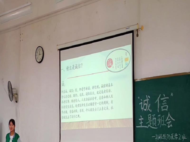 2021级预防医学专业开展诚信考试主题班会 来源:公共卫生与管理学院学生工作办公室 作者:宋南 发布时间:2022-06-20 10:03:11 浏览次数: 次 【字体:小 大】 2022年6月17日,2021级预防医学专业在广西中医药大学仙葫校区教学楼2-205教室开展“诚信考试”主题班会,该班会由团支书廖华宁主持。该班会意在让同学们明确“诚信”的含义,理解诚信对学生自身发展和为人处世的我重要意义;使同学们崇尚诚信,远离虚伪欺骗,把诚信作为同学之间、师生之间、家庭成员之间相处的基本原则;使同学重视学习,重视考试,懂得诚实守信必须从我做起,从现在做起,落实在日常的学习生活中。 分享到: 【打印正文】