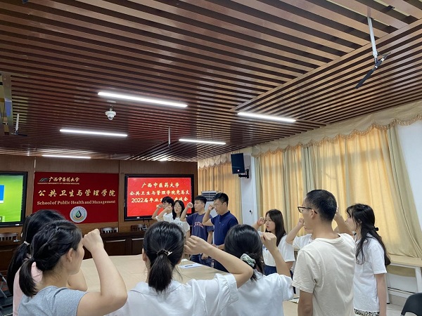 为增强我院毕业生党员对中国共产党的了解,进一步教育和帮助毕业生党员坚定党的理想信念,公共卫生与管理学院于2022年6月28日16:00在自诚楼A801召开毕业生党员离校座谈会。会议由我院党总支书记李怀泽主持,党支部书记宋南与全体毕业生党员参加了本次会议。