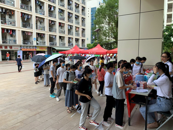 科普宣讲结束后,公管学院教工第一支部联合南宁市疾病预防控制中心第一党支部在五合食堂门口开展了校园食品安全主题的趣味游园活动,并进行现场咨询答疑、问题解答和礼品发放等活动。活动现场得到了2019级预防医学专业同学的积极协助,也吸引了其他专业众多同学的热情参与。