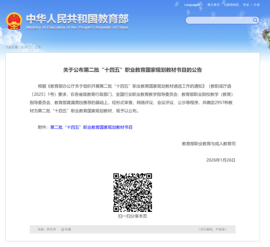 【喜报】我校教材入选第二批“十四五”职业教育国家规划教材