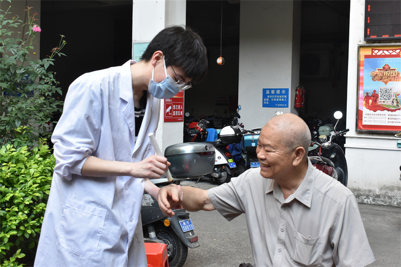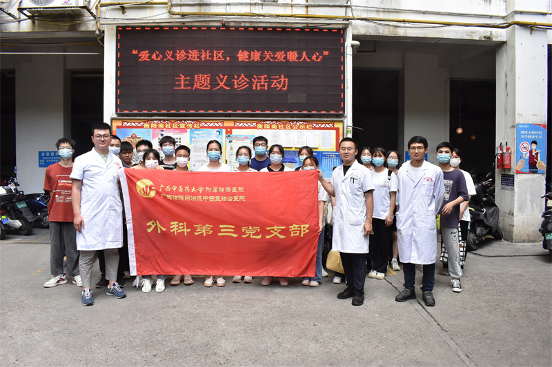 近日,广西中医药大学瑞康临床医学院红十字志愿服务队联合外科第三党支部、医疗服务部,分别在万力社区、衡阳南社区开展了主题为“爱心暖人间,志愿伴我行”及“爱心义诊进社区,健康关爱暖人心”的健康义诊暨主题党日活动。