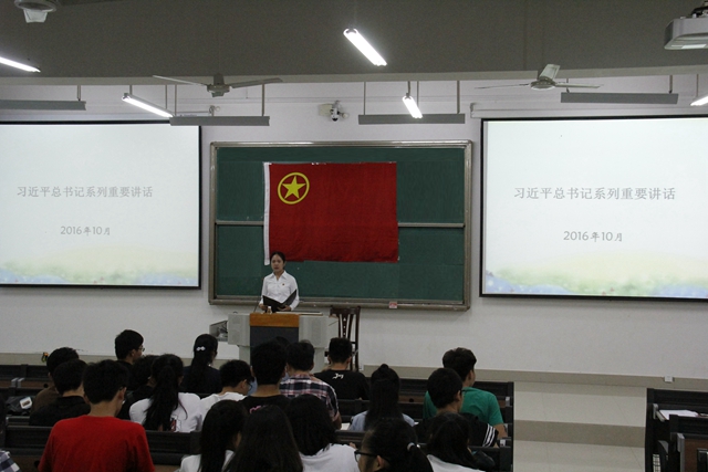 为使我校学生更好地学习习近平总书记系列重要讲话精神、落实团中央“一学一做”教育实践要求,由我校团委书记王春花老师主讲的“学习总书记讲话,做合格共青团员”主题团课于5月24日晚7点在仙葫校区教学楼1-101教室召开。各学生组织代表、各班团支部书记参加了本次团课。