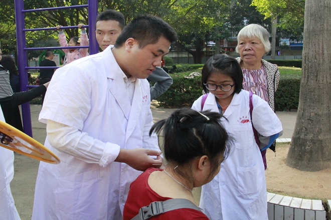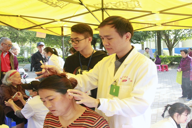 活动分为两类项目,一是推拿按摩、艾灸、专家咨询、血压测量、CPR心肺复苏演示等医疗服务及医学知识普及,二是垃圾分类知识宣传讲解。