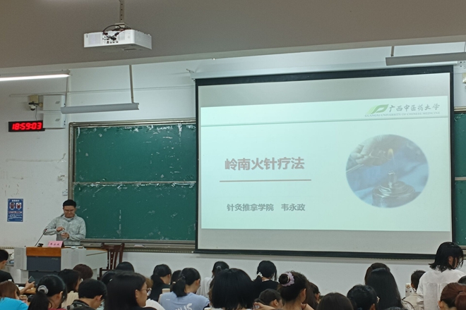 为了让同学们体会到中医药传统文化的传承价值,了解治疗疾病的中医外治技法,广西中医药大学学生会于2023年4月14日在仙葫校区1-203举办了以《岭南火针疗法》为主题的讲座。本次讲座由韦永政老师主讲,到场人数共计280余人。
