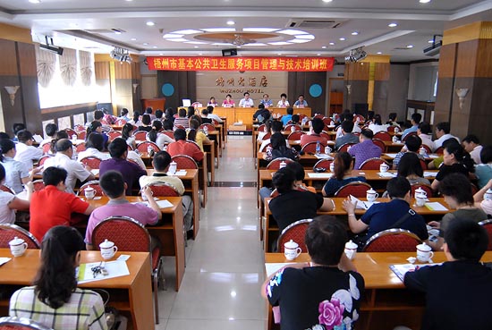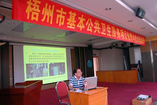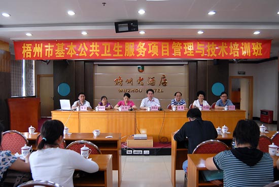 应广西梧州市卫生局的邀请,2010年5月24至27日,瑞康医院副院长、广西城市社区卫生服务技术指导中心主任张春、常务副主任梁永华一行7人,到梧州市举办了一期“国家基本公共卫生服务规范培训班”。 梧州市各社区卫生服务中心(站)相关工作人员100多人参加了培训。