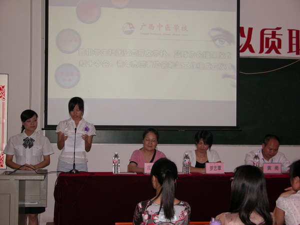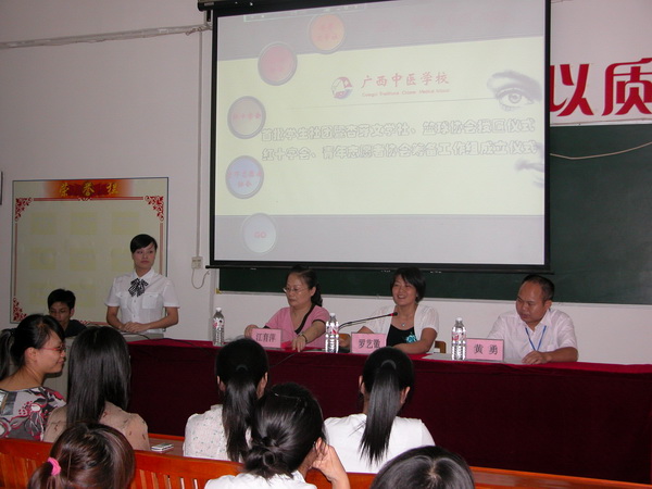 2010年6月12日下午5:30,广西中医学校2010年学生社团暨杏芽文学社、篮球协会授匾仪式,红十字会、青年志愿者协会筹备工作组成立仪式在北湖校区2号教学楼隆重举行。学校党委副书记罗艺徽、学生科科长黄勇、学生科副科长江育萍及学团委学生科的相关老师出席了仪式,共同见证了我校新社团成立的重要历史时刻。