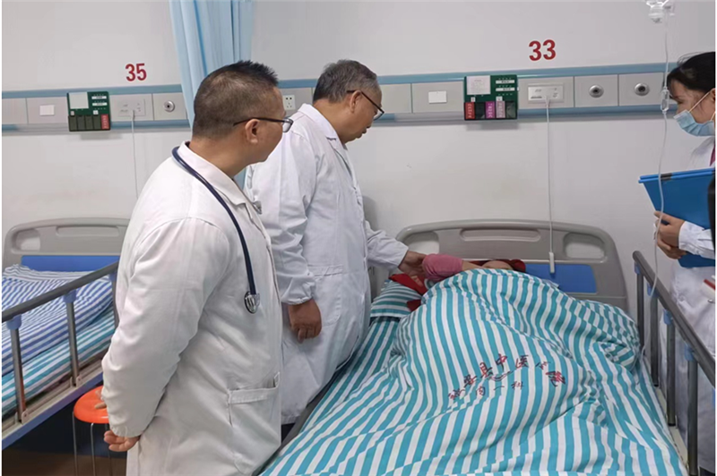 座谈会结束,蓝青强教授,黄夏冰、文礼副主任医师分别到相关科室,进行教学查房及临床带教,为教学查房做了规范示教。同时为相关科室的疑难病例提出诊疗意见,对各科室遇到的发展问题也提出中肯的意见。