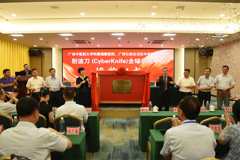 会议伊始,现场领导共同为“全球射波刀示范中心”揭牌。附属瑞康医院荣获这一荣誉,不仅是对医院在精准放疗领域卓越成就的高度认可,更是对国内肿瘤防治事业高质量发展的有力推动。医院作为广西唯一的射波刀治疗中心,自引进国际先进的M6和G3两台射波刀系统以来,始终以“精准治疗守护生命希望”为使命,累计为近20000名肿瘤患者提供了高质量的立体定向放射治疗服务。从复杂肿瘤的亚毫米级精准定位到动态追踪照射技术的临床突破,中心凭借“无创伤、高精度、短疗程”的治疗优势,让众多无法手术或不耐受传统治疗的患者重获新生,用技术实力赢得了患者与行业的双重认可。