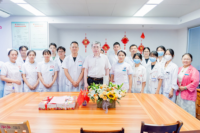 慰问过程中,院领导与教师们亲切交谈,详细了解大家的工作近况、教学任务推进情况以及日常工作中遇到的困难。“大家既要承担繁重的临床工作,又要用心带教培养医疗后辈,辛苦了!” 院领导感谢教师们的辛勤付出,表示医院始终重视医学人才培养工作,带教老师作为年轻医护人员成长路上的“引路人”,不仅传递专业知识与临床技能,更传承医者仁心的职业精神;希望大家继续保持教学热情,培养更多优秀的医疗人才。