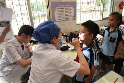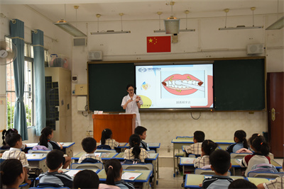 在医疗服务部的组织下,口腔科党员医生带头走进南宁市华强路小学,为学生们带来了一场丰富多彩的护齿之旅。医生们分别到多个班级,为学生们带去生动有趣的爱牙小课堂。医生们通过形象的图片、简洁易懂的语言,深入浅出地讲解儿童常见口腔疾病的原理、影响因素和预防措施;通过观看爱牙动画片、口腔健康知识问答、手动模型演示的方式与学生们互动,让他们在轻松愉快的氛围中掌握正确的刷牙方法以及口腔卫生的知识。医生们还给学生们送上爱心小礼品,并为他们进行了细致的口腔健康筛查,记录填写“儿童口腔健康检查表”,让他们带回家,提醒家长们及时带孩子到口腔科进行专业的口腔检查及诊治。