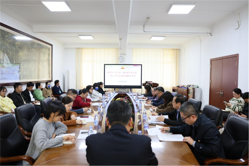 活动中,桂雄斌还开展基层党建工作专题调研座谈,听取机关第一党支部、机关第八党支部、学生第五党支部代表围绕基层党建调研提纲作汇报,并进行交流探讨。