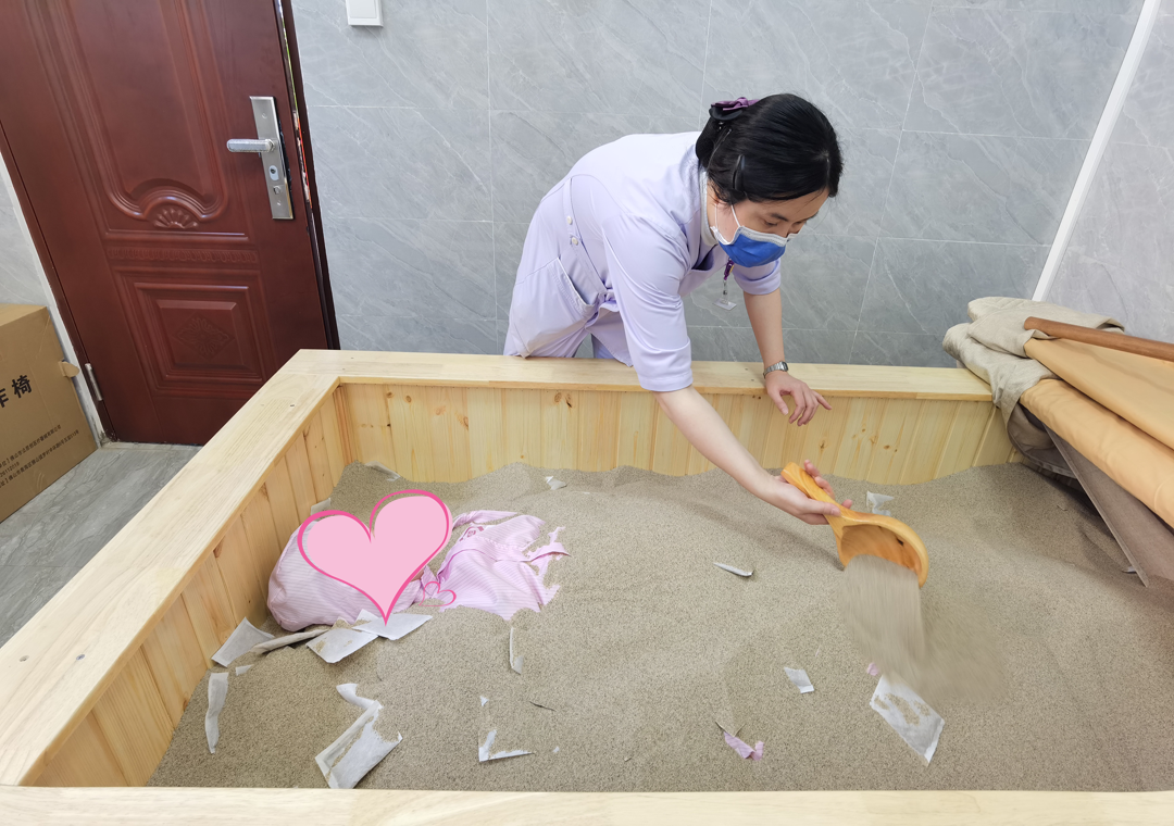 沙疗作为源自新疆的传统自然疗法,于2014年被列入国家级非物质文化遗产。其“借自然之力,疗身体之疾”的理念,与壮医“天地人三气同步”的整体观高度契合。国壮“壮医沙疗馆”不仅引进了新疆吐鲁番的优质黄沙和矿物盐,还结合广西高热、潮湿的气候特点,对沙池和盐池进行了本土化改造。同时,创新性地融入了壮药药包与药枕,实现“物理温热”与“壮药渗透”协同作用,达到“以外疗内、沙药结合”的系统疗效。