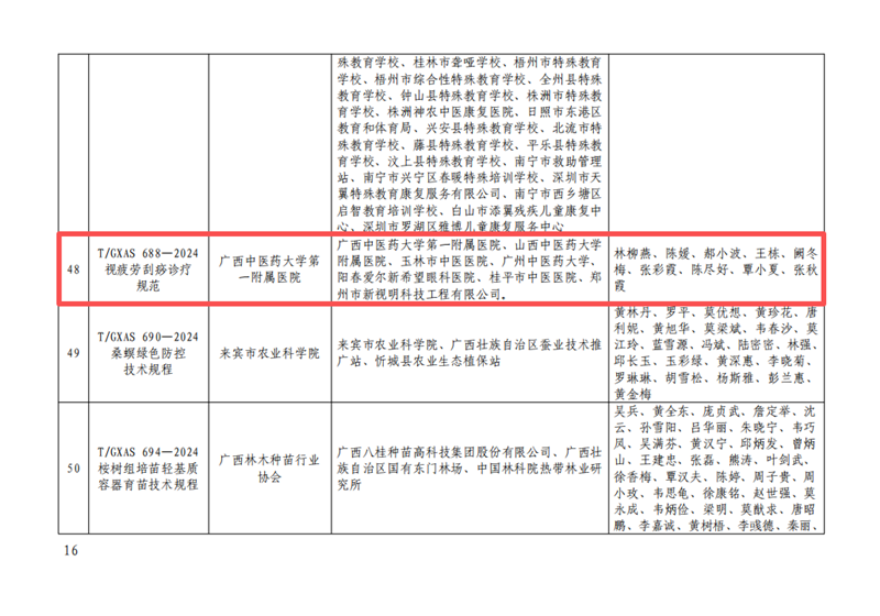 第一附属医院眼科牵头制定的《视疲劳刮痧诊疗规范》团体标准入选广西首批原创性高质量团体标准实施应用典型案例