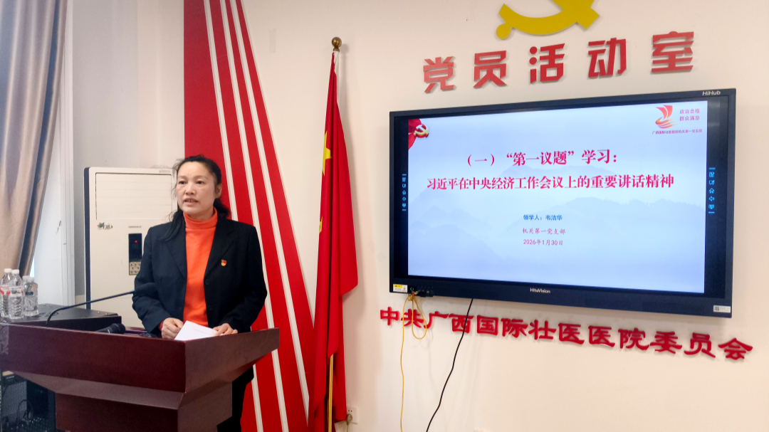 支部书记韦洁华围绕习近平总书记在中央经济工作会议上的重要讲话精神,组织开展“第一议题”学习,并以《学习习近平总书记二O二六年新年贺词和在全国政协新年茶话会上的讲话》为题讲授支部党课。党员们立足岗位实际,围绕“以贺词推动工作创新”展开交流研讨,在思想碰撞中凝聚共识、破解难题。