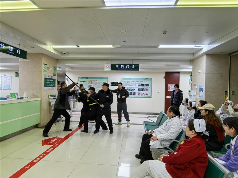 为进一步增强门诊医务人员安全防范意识,提升突发事件应急处置能力,2月11日中午,第一附属医院仙葫院区门诊部联合保卫科组织开展消防及防暴应急演练。门诊各科室护理人员、导医、安保人员共31人参加。