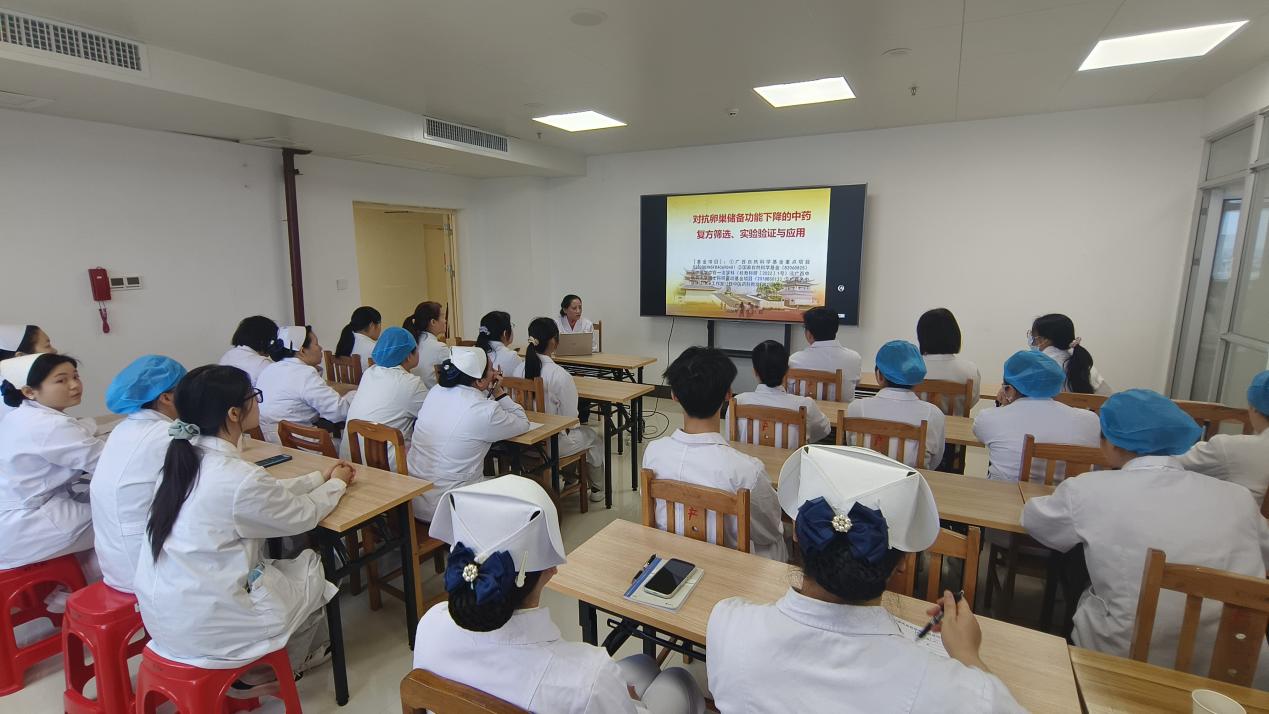 教学查房结束后,林江教授以《对抗卵巢储备功能下降的中药复方筛选、作用机制与临床应用》为题,为桂平市中医医院妇科医护人员带来一场精彩的学术讲课。林江教授结合自身多年临床与科研经验,深入浅出地讲解核心理论、典型病例与实用技术,分享中医诊疗的新思路、新方法,还传授了所讲专题的研究方法,实用性很强。现场互动热烈,基层医护人员积极提问交流,林江教授逐一解答,现场学术氛围浓厚。