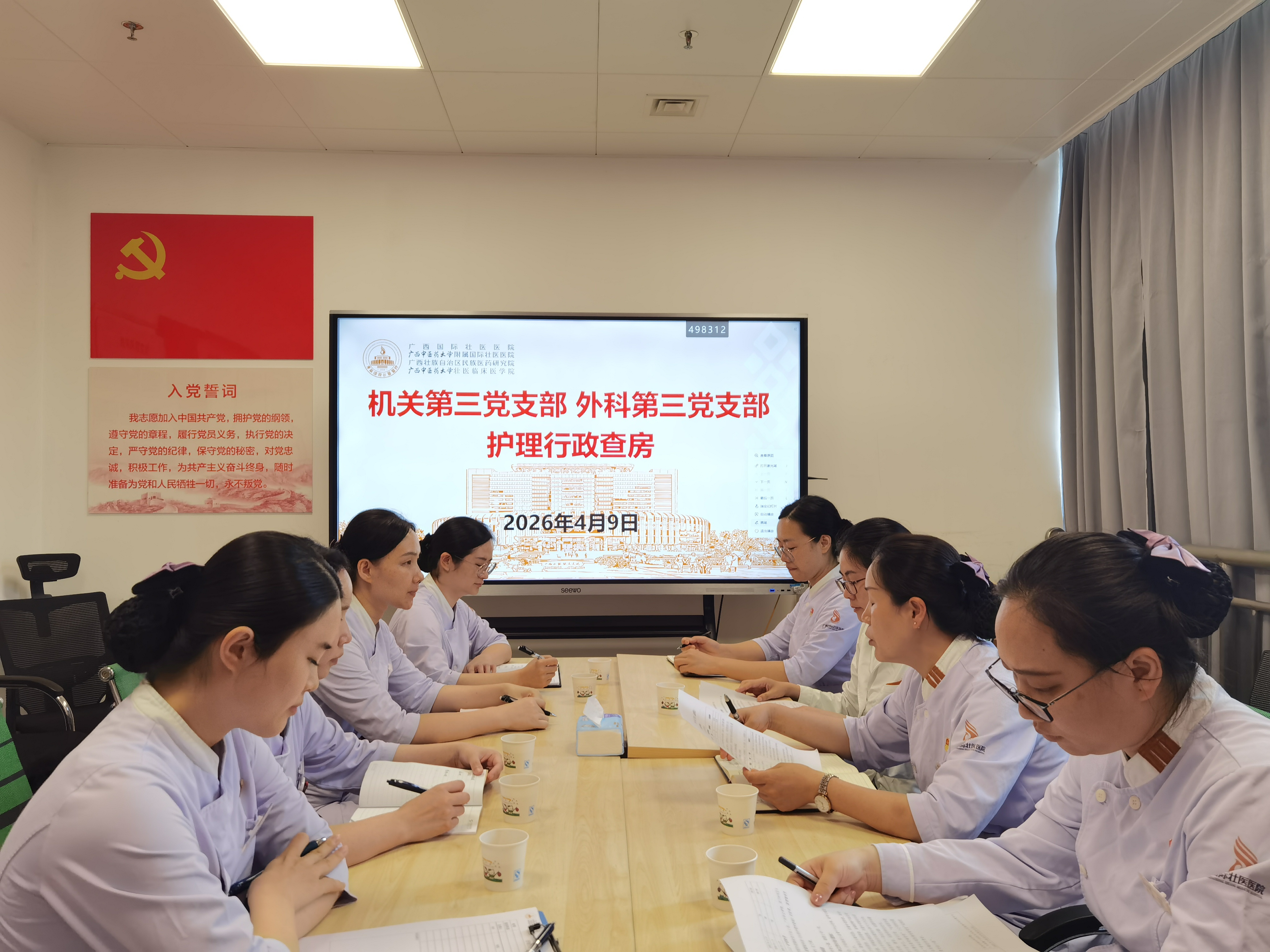 为提升护理服务质量与患者满意度,4月9日,广西国际壮医医院机关第三党支部联合外科第三党支部开展专题护理行政查房活动。两个支部的支委、党员代表及临床护理相关负责人参加。