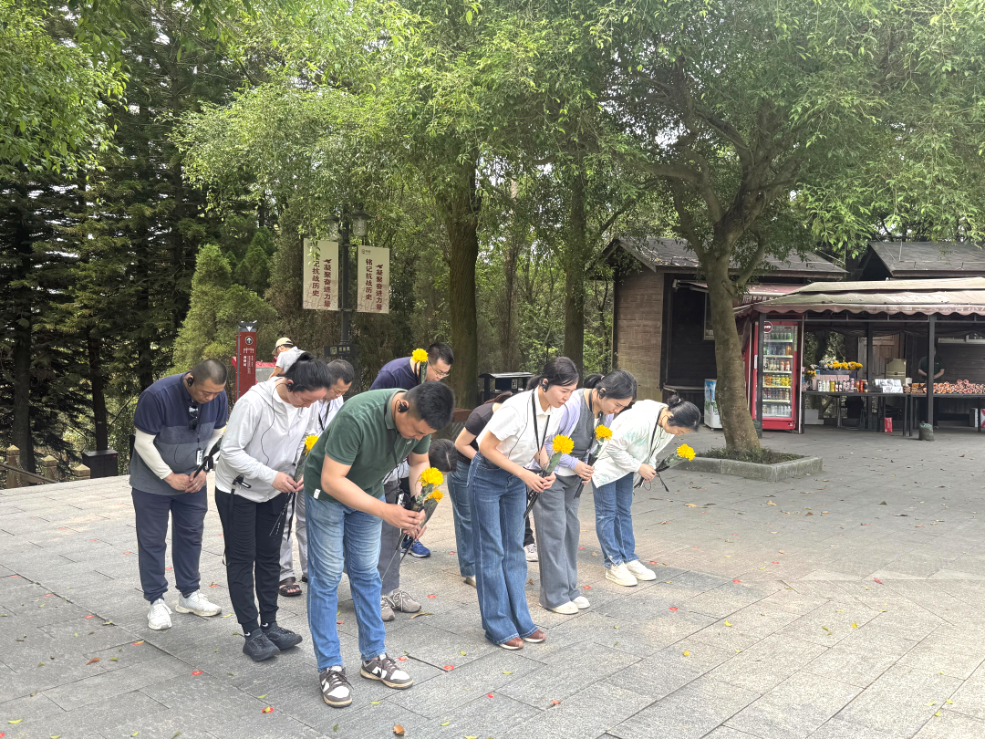 随后,全体人员在纪念塔前整齐列队,肃立默哀。党支部书记舒莉莉代表支部敬献花圈,全体党员依次敬献鲜花并鞠躬,以庄重仪式表达对英烈的深切缅怀与崇高敬意。
