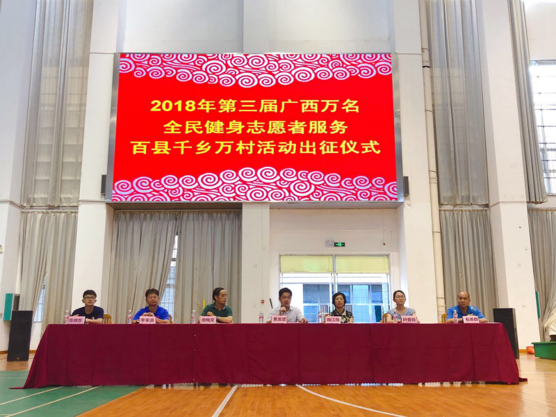 高扬志愿服务旗帜 推动全民健身事业——我校举行2018年第三届广西万名全民健身志愿者服务百县千乡万村活动出征仪式