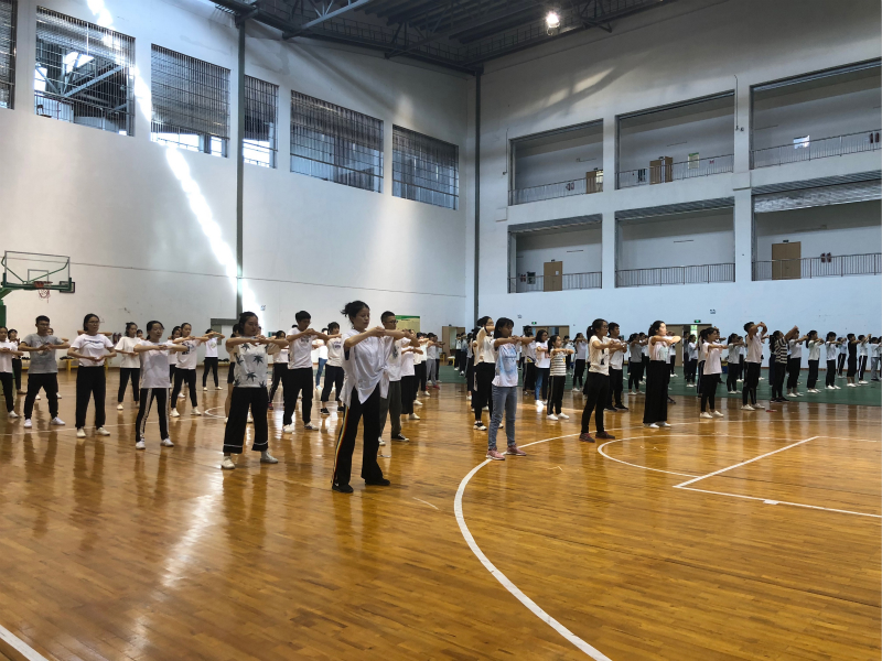 我校向来高度重视大学生的志愿服务工作,把大学生志愿服务作为我校服务社会的重要途径,作为我校人才培养的重要方式。自我校接到本次全民健身志愿服务活动的文件后,学校领导即做了周密部署,6月8日开始进行全校宣传动员及招募工作,短短几天时间报名人数即超过200人。在同学们正处期末紧张的备考和考试当中进行每天1.5小时的八段锦和太极拳强化训练,为顺利开展全民健身志愿服务活动打下了坚实的基础。