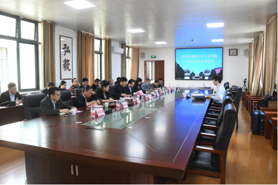 11月3日,中央统战部组织院士专家和留学人员国情考察服务团到广西开展国情考察和社会服务活动,其中华茂伟业绿色科技股份限公司董事长路万里到广西中医药大学开展技术服务活动,就中药、民族医药、新药研发、天然药物提取等方面进行了技术指导和探讨交流。学校党委书记尤剑鹏在仙葫校区会见了路万里并进行了深入交谈,学校党委副书记庞宇舟及相关职能部门负责人陪同考察。