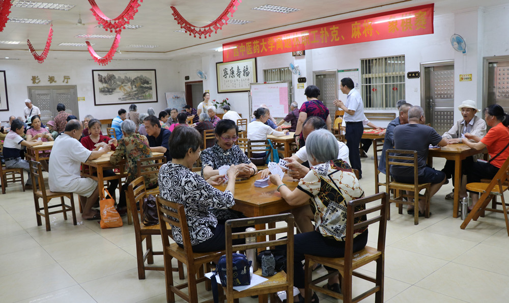 为满足我校离退休职工的精神文化需求,让他们退休也能享有健康的生活方式,以饱满的精神状态安享晚年,5月13--17日,学校离退休工作处、老体协精心组织和安排,在明秀校区老年活动中心举行了广西中医药大学离退休职工棋牌比赛。
