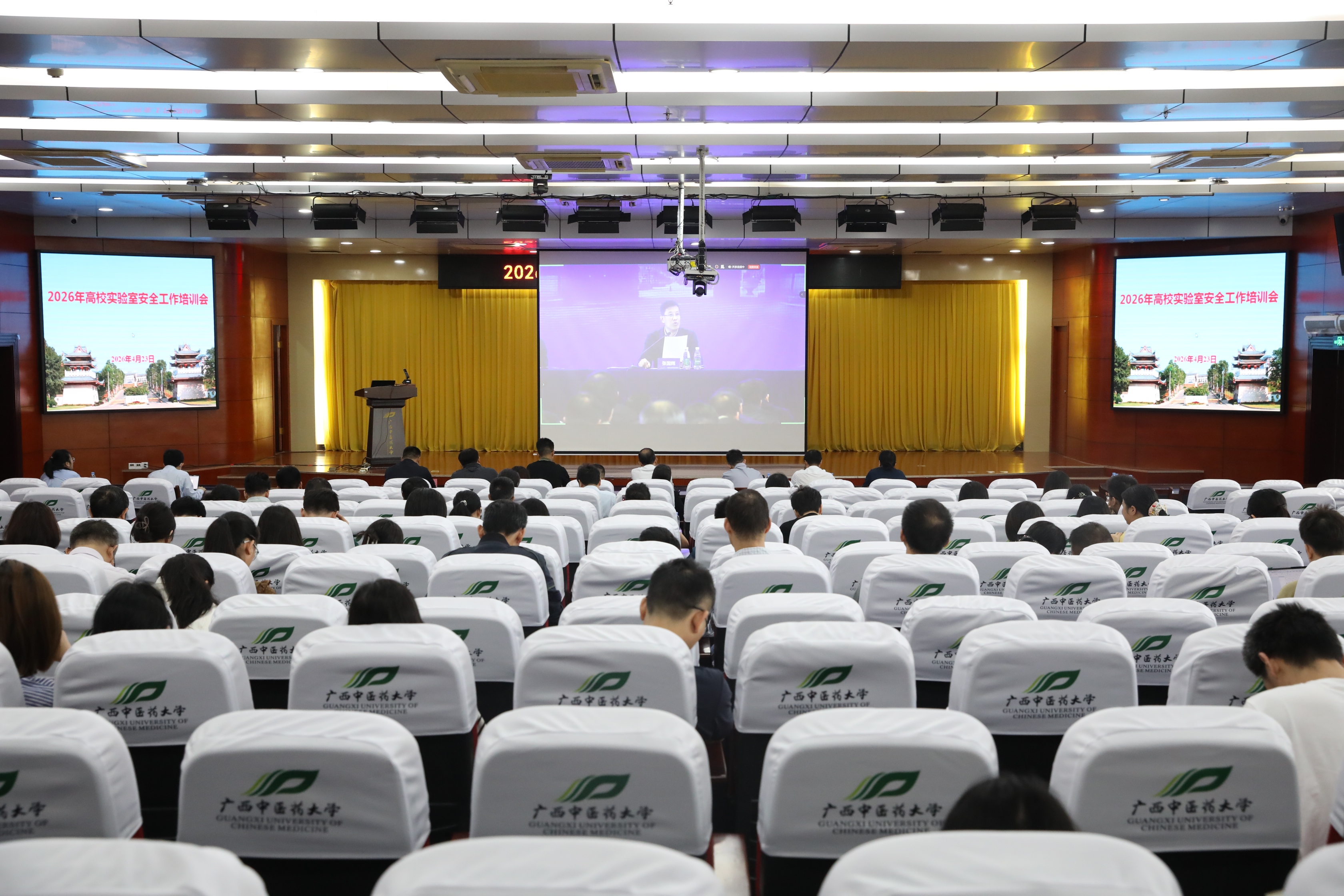 4月23日上午,教育部科学技术与信息化司、高等教育司联合召开2026年高校实验室安全工作培训会,主会场设在上海交通大学。我校在校本部图书馆二楼第二会议室设立分会场,组织集中观看视频直播。学校党委常委、副校长唐振宇出席会议,相关职能部门、二级学院、教辅单位以及科研平台负责人、一线科研人员150余人参会。