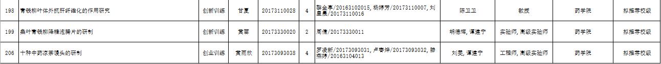 广西中医药大学全校共立项210项,药学院立项57项,其中拟推荐国家级11项,拟推荐自治区级17项,拟推荐校级29项,药学院2019年大创项目人才辈出,立项喜获大丰收,祝药学院越办越好!