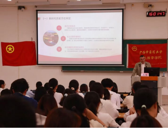“青年马克思主义者培养工程班”(简称“青马班”)是青年政治骨干的“成长摇篮”,也是新时代青年筑牢理想信念、锤炼责任担当的“精神熔炉”。为进一步促进我院青年学子成长成才,激发青年学生的时代担当,11月11日下午,我院在仙葫校区教学楼举办2025-2026学年“青马班”开班仪式,学院党委书记韦维出席仪式并讲授开班第一课。