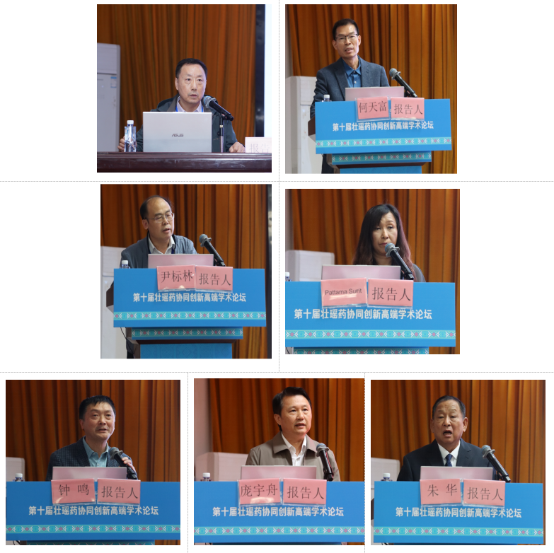 论坛主会场还邀请了南京中医药大学刘训红教授、广西中医药大学何天富主任药师、华南理工大学尹标林教授、泰国孔敬大学研究员Pattama Surit博士、广西中医药研究院钟鸣教授、中国民族医药学会副会长庞宇舟教授、广西壮瑶药重点实验室朱华教授等全国知名专家先后作了学术报告,王孝勋研究员、甄汉深教授、傅鹏教授、苏健研究员分别主持了报告会。与会专家学者畅所欲言,深入交流,相互借鉴,共同为推动中医药壮瑶医药传承创新发展,为健康广西、健康中国建设作出新的更大贡献。